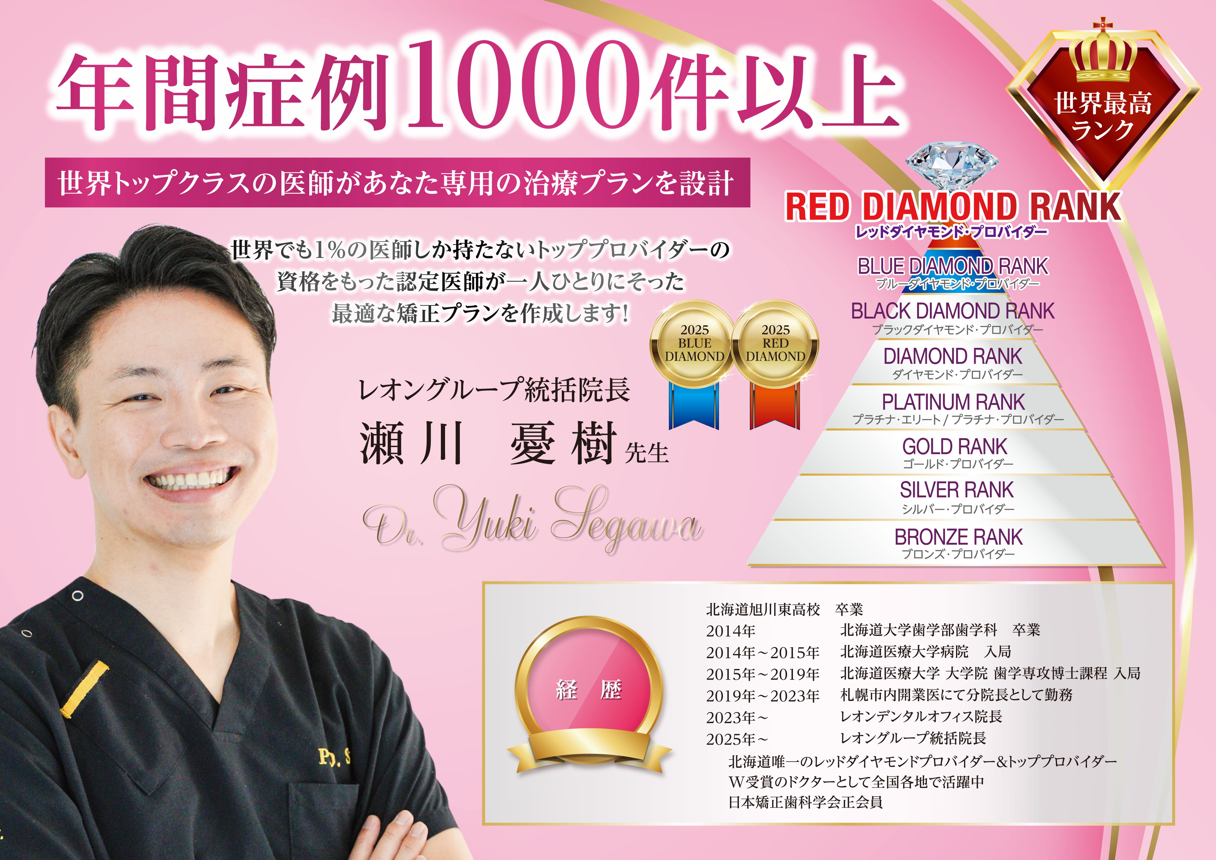 北海道におけるインビザライン治療の第一人者。 日本全国でも数名、北海道で唯一の レッドダイヤモンドプロバイダーとトッププロバイダーの両方の資格を有する。​
